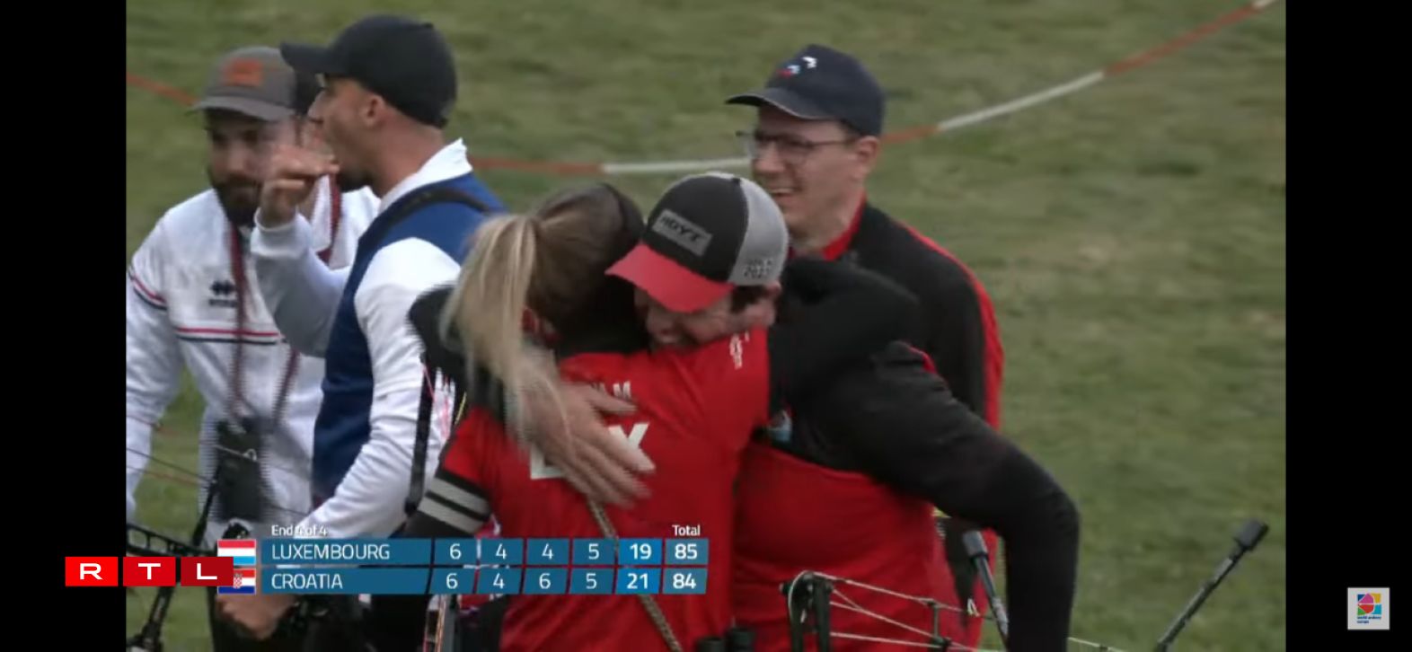 E Freideg den Owend ass et fir déi Lëtzebuerger Koppel an der Finall am Compound Mixed Team ëm Gold gaangen. Um Enn gouf et eng knapp 85:84-Victoire géint eng Koppel aus Kroatien. Domadder kënne sech d’Lëtzebuerger iwwert d’Goldmedail freeën.