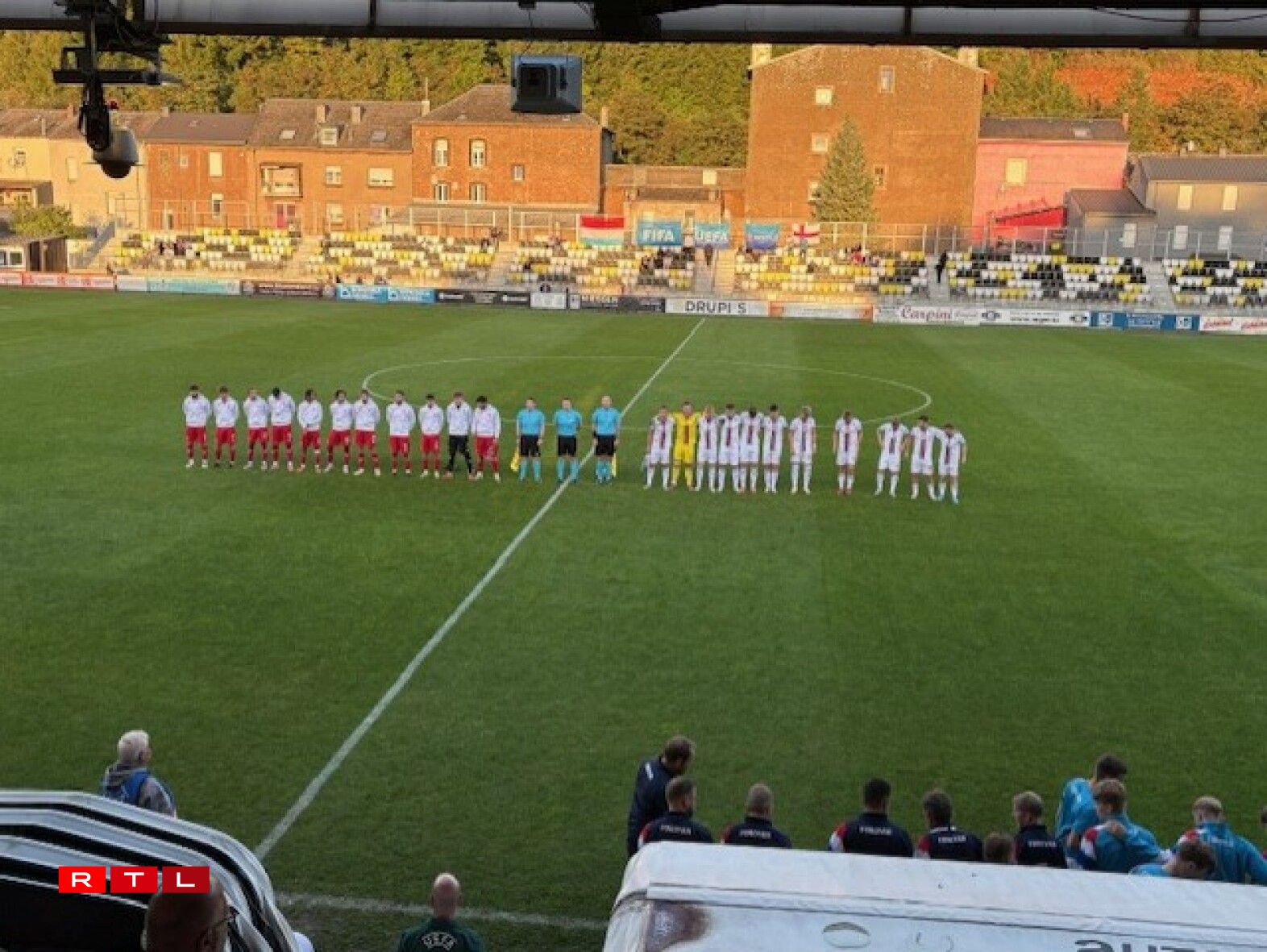 Nodeem d’Ekipp an de Staff vun der U21 de leschten Donneschdeg e schroe Busaccident haten an de Match géint Frankräich verluecht gouf, konnte sech déi jonk Rout Léiwen nees voll op de Fussball konzentréieren. Bei enger Kuliss vu 405 Spectateuren a Presenz ënner anerem vum Premierminister Luc Frieden an och vum Sportminister Georges Mischo huet d’FLF-Selektioun d’Gäscht schonn no 3 Minutten an dat no engem Corner seriö gepréift.