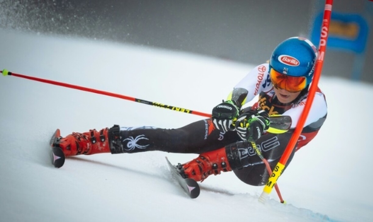 D’Mikaela Shiffrin loung nom éischten Duerchgang a Féierung, d’Petra Vlhova war déi Zweet.