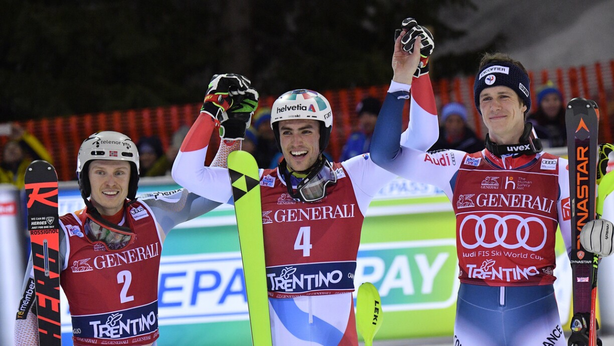 D’Favoritten op d’Victoire waren déi éischt, déi e Mëttwoch un den Depart gaange sinn. Am éischten Duerchgang war et de Schwäizer Daniel Yule, deen am séierste biergof komm ass, dat mat 47 Sekonnen a 56 Honnertstel. Domat ass hie mat enger Avance vun 19 Honnertstel op den Norweger Henrik Kristoffersen an den zweeten Duerchgang gaangen. Den Andre Myhrer aus Schweden louch nom 1. Laf op der 3. Plaz. De Fransous Clément Noël, deen de leschte Slalom zu Zagreb gewanne konnt, hat ee gréissere Feeler agebaut a sengem Laf an hat esou schonns ee Réckstand vun 80 Honnertstel.