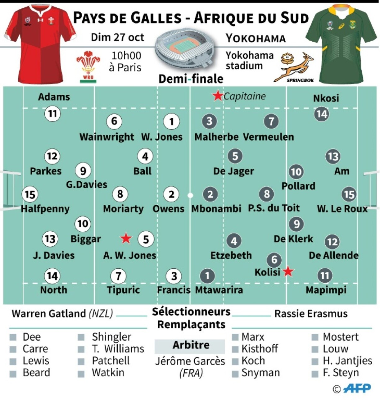 Am Spill ëm Plaz 3, den 1. November, kënnt et dann zum Duell tëscht Neiséiland a Wales.