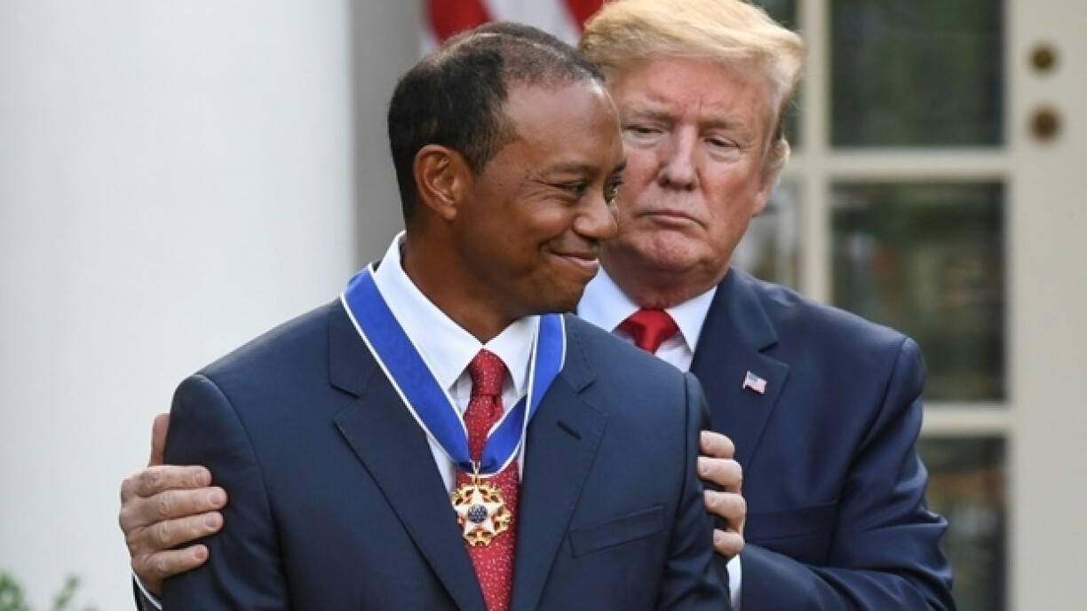 Den US-President Trump huet de Golfspiller Tiger Woods en Dënschdeg am Wäissen Haus mat der amerikanescher Fräiheetsmedail ausgezeechent.
