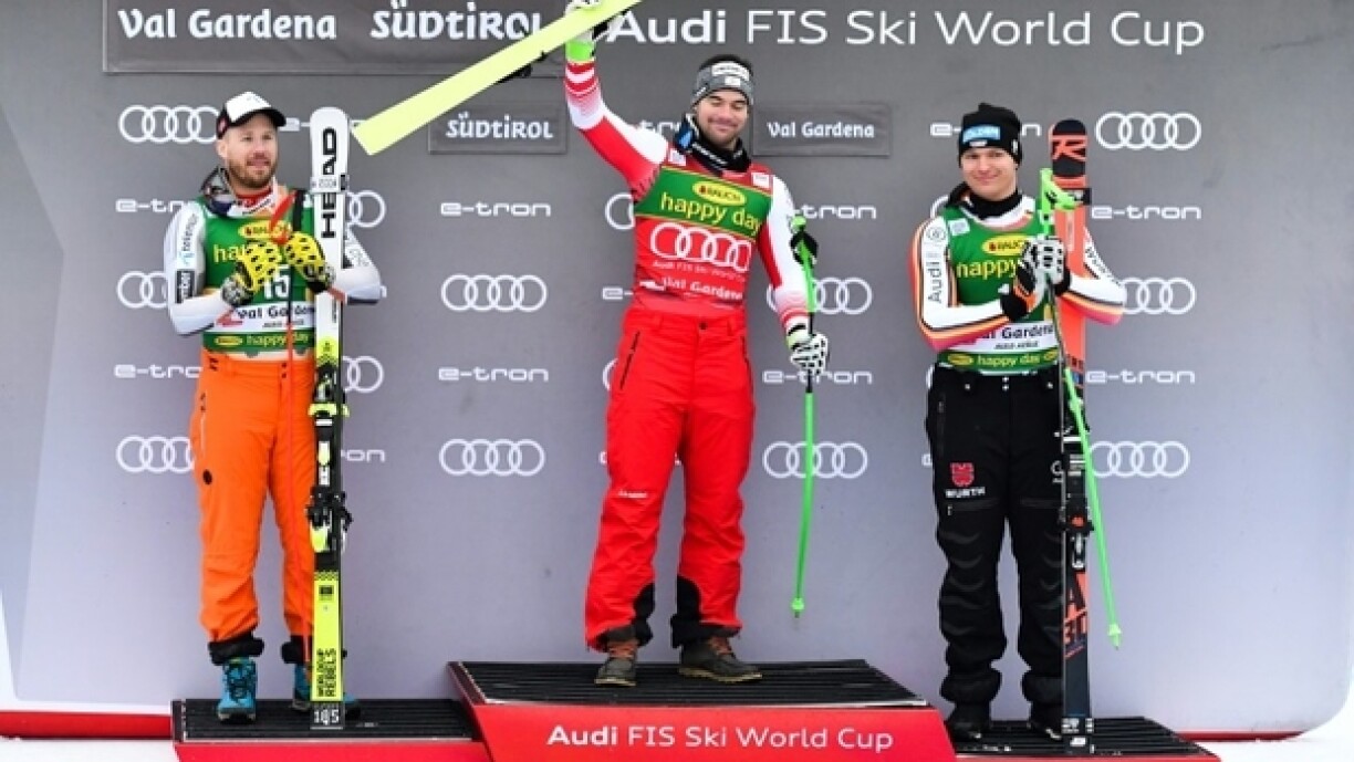 D’Bedingunge waren e Freideg alles anescht wéi einfach beim Super-G zu Gröden an Italien. Op der verkierzter Streck ass de Vincent Kriechmayr am beschten eens ginn an huet sech d’Victoire geséchert. Den Éisträicher hat um Enn e Virsprong vu 5 Honnertstel op den Norweger Kjetil Jansrud an 22 Honnertstel op den Däitschen Thomas Dreßen.