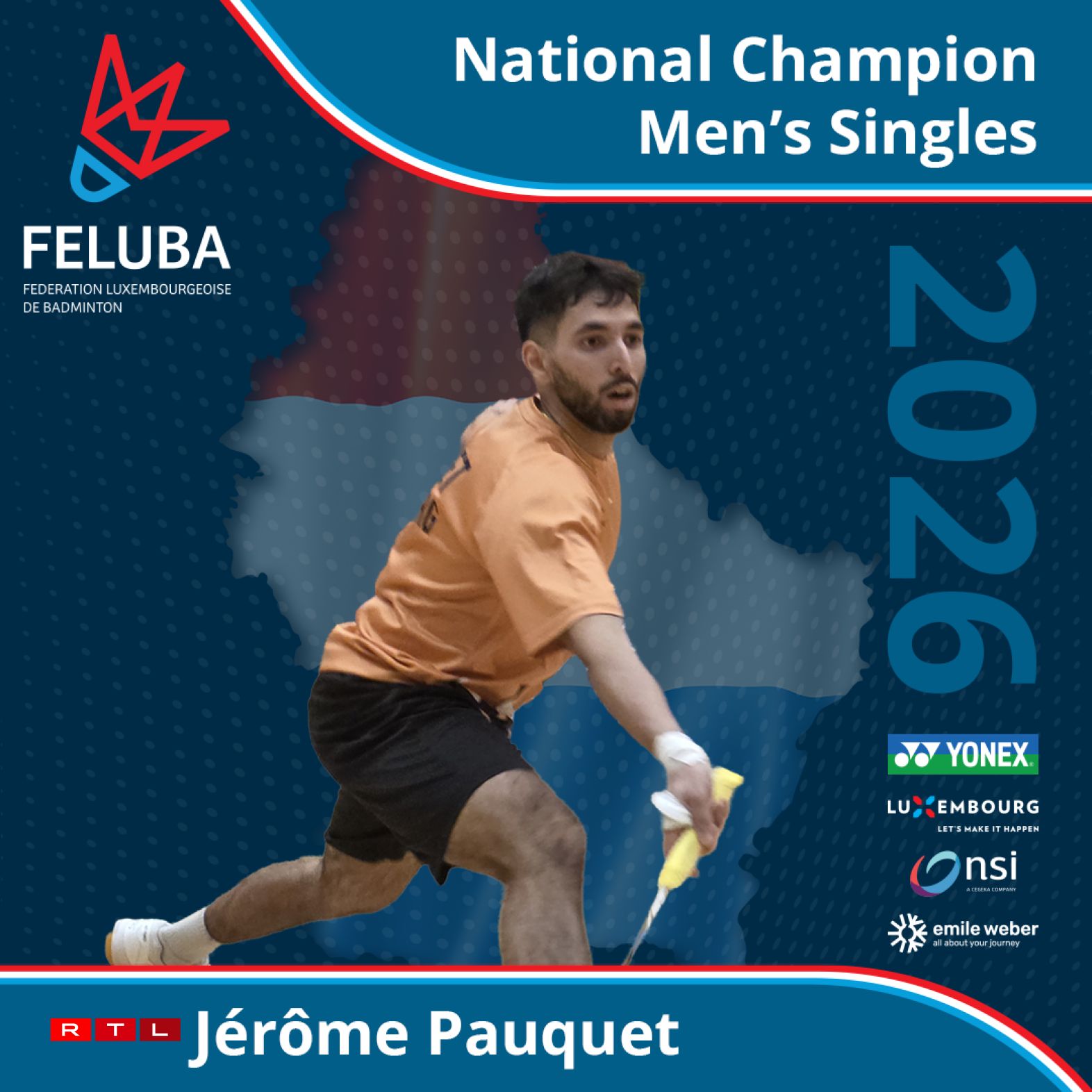 De Jérôme Pauquet huet säi Status als national Referenz eng weider Kéier ënner Beweis gestallt. Mat engem 21:15 an 21:19 géint den Noah Warning konnt hie säi sechsten nationalen Titel hannertenee gewannen an domat Geschicht schreiwen. Bis dohi war dat nach kengem Spiller gelongen. De Rekord vu 5 Titelen hannerteneen hat hie sech bis dohi mam Robert Mann an dem Yves Olinger gedeelt, déi hir Meeschterschaften Ufank den 200er-Jore gesammelt haten.