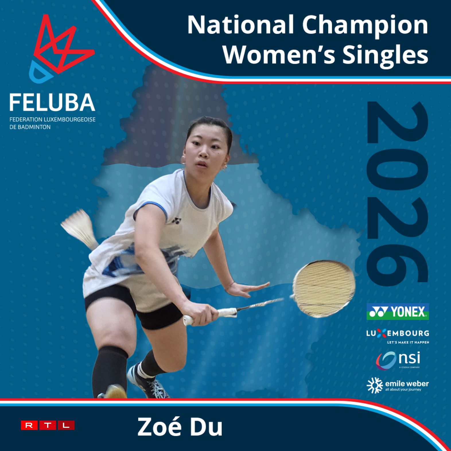 Am Dammen-Eenzel huet déi eréischt 17 Joer jonk Zoé Du den Titel gewonnen. An der Finall huet si sech géint d’Myriam Havé, Titelverdeedegerin a sechsfach national Meeschterin, mat 21:5 an 21:17 duerchgesat. Dës Victoire markéiert eng wichteg Etapp an hirer sportlecher Entwécklung a versprécht méi fir d’Zukunft.